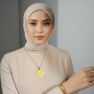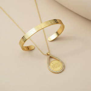 Damla Model Kolye ve Ayetel Kürsi Bileklik Seti Gold Renk Çelik Takı