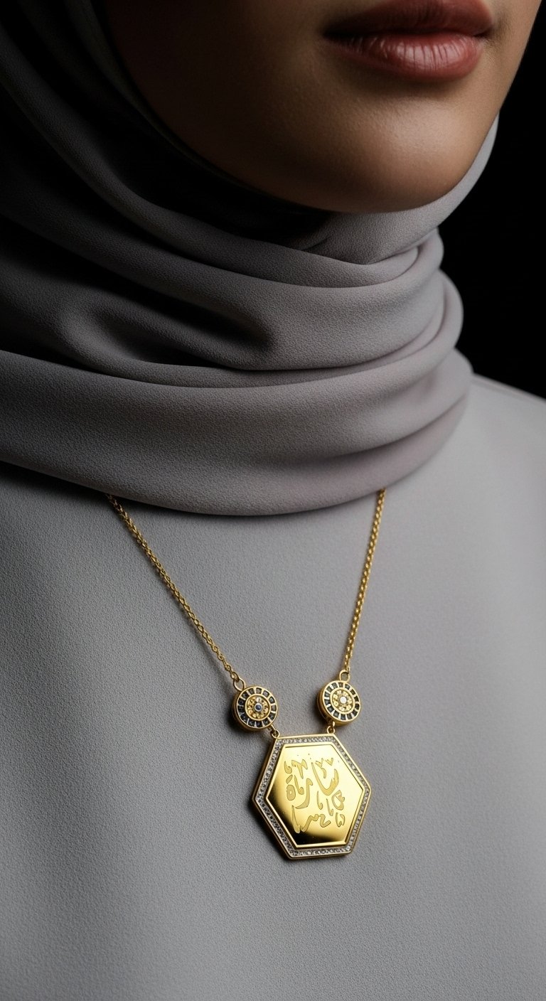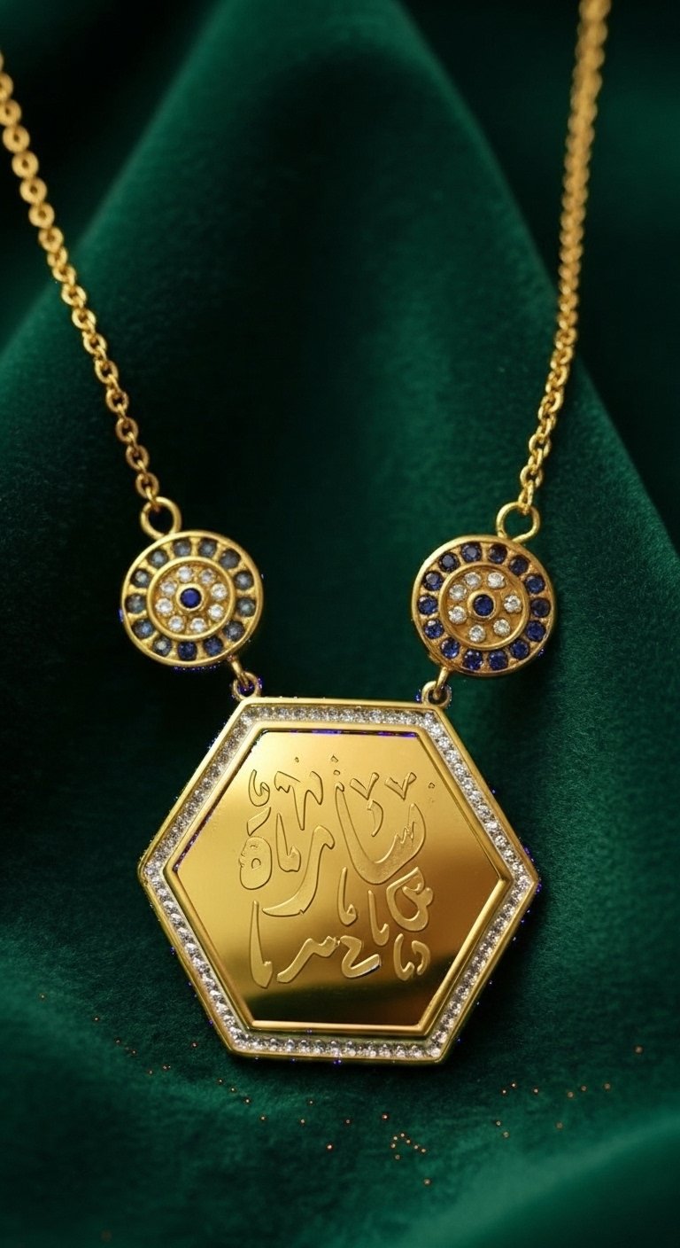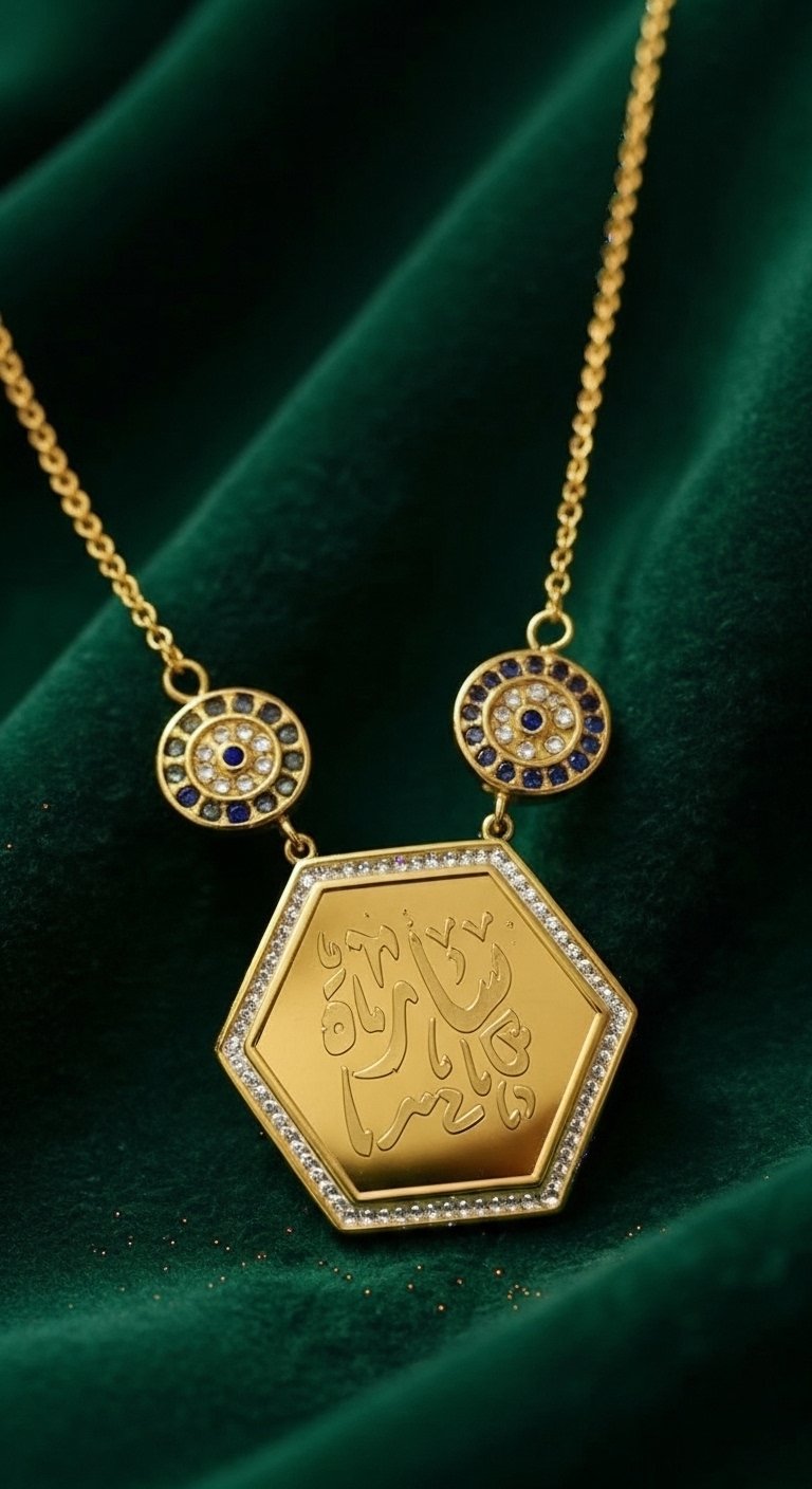 Altıgen Maşallah Kolye – Çelik Altın Kaplama, Şık ve Manevi Takı, Nazar Koruyucu Aksesuar