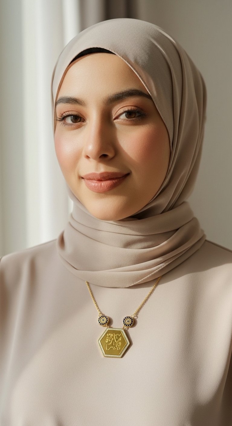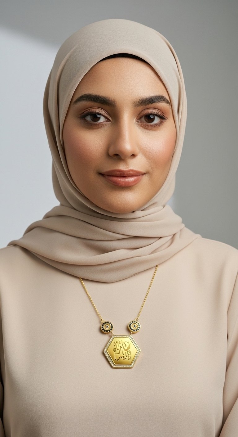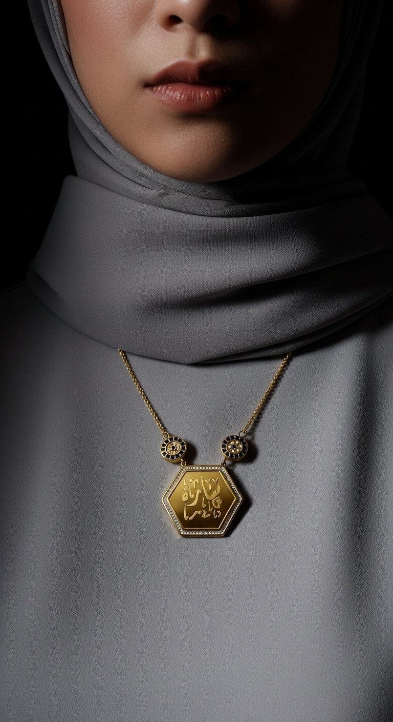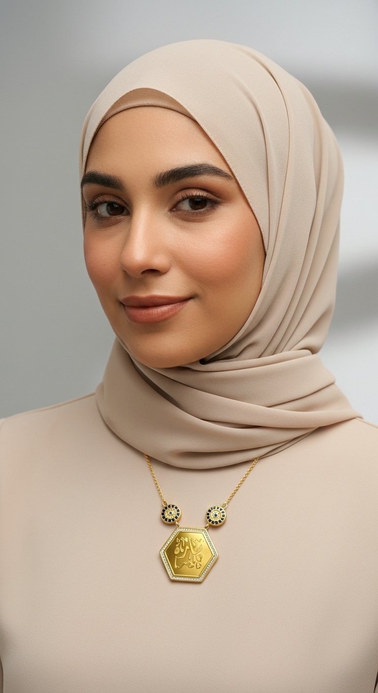 Altıgen Maşallah Kolye – Çelik Altın Kaplama, Şık ve Manevi Takı, Nazar Koruyucu Aksesuar