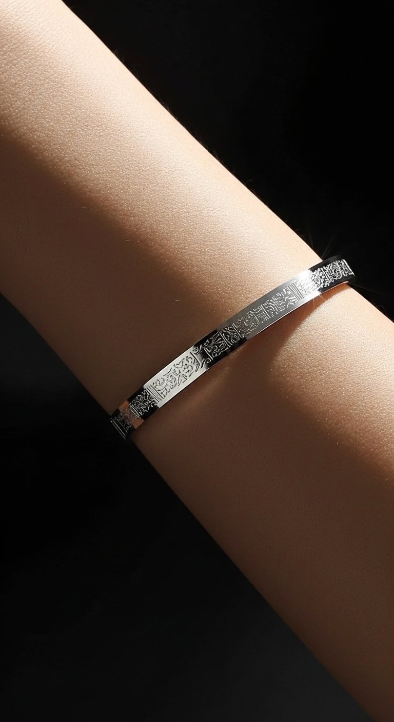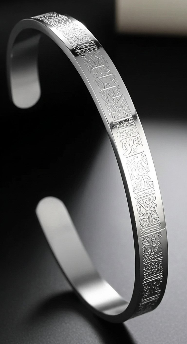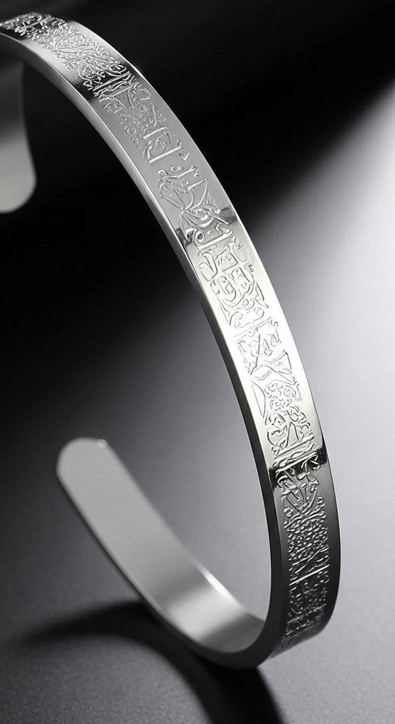 Ayetel Kürsi Yazılı Paslanmaz Çelik Bileklik – Ayarlanabilir, Unisex, Şık ve Anlamlı Tasarım