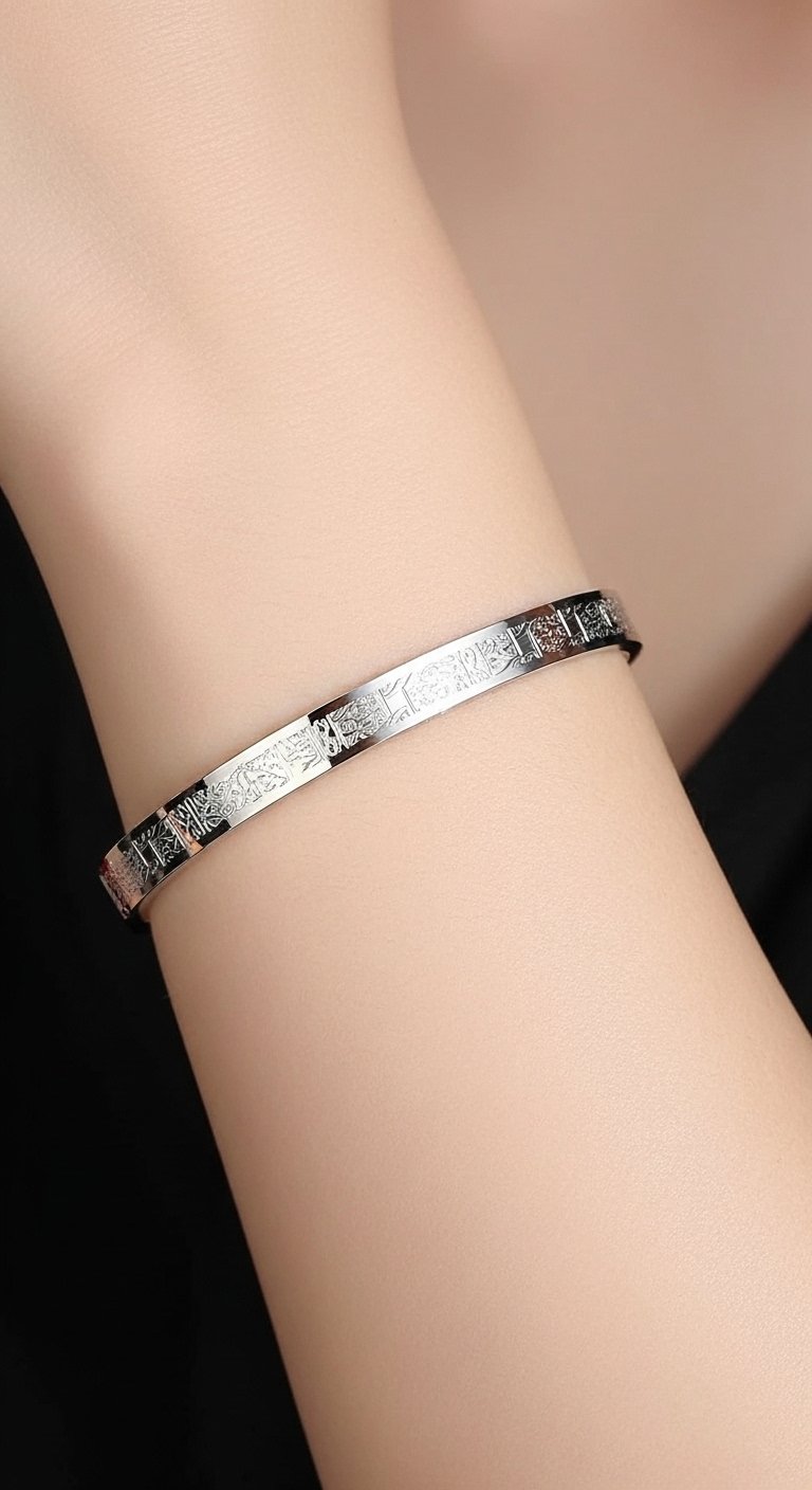 Maneviyat ve şıklığı bir araya getiren bu özel tasarım bileklik, Ayetel Kürsi duasının güçlü enerjisini her an yanında taşımanı sağlar. Zarif işçiliğiyle göz alıcı bir görünüm sunarken, içeriğindeki dua sayesinde ruhunu da korumaya alır.
