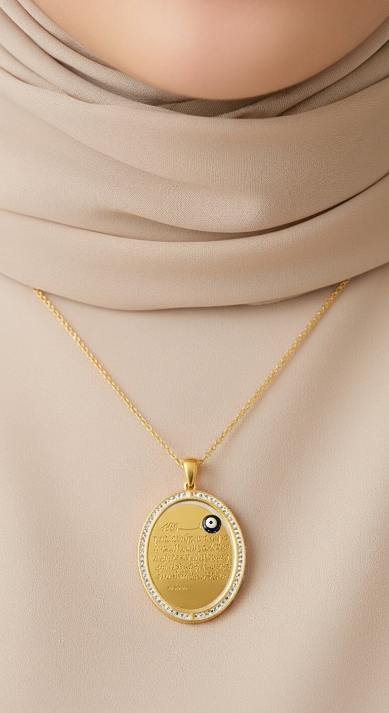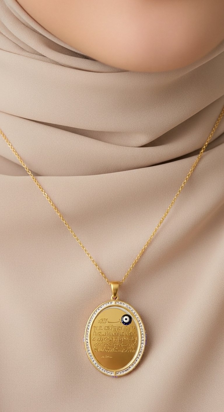 Nazar boncuklu Kolye – Ayetel kürsi – Çelik Altın Kaplama, Şık ve Manevi Takı, Nazar Koruyucu