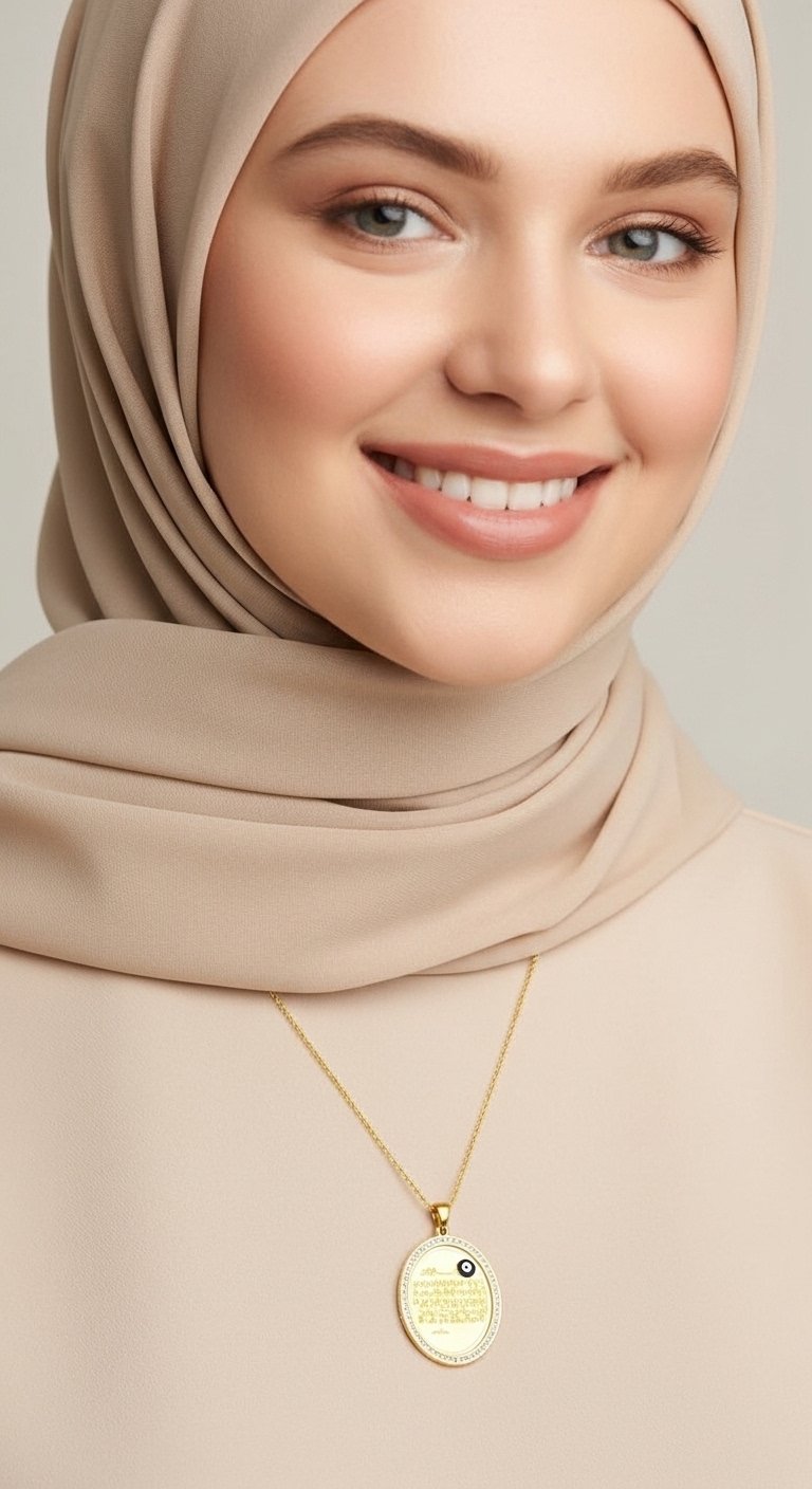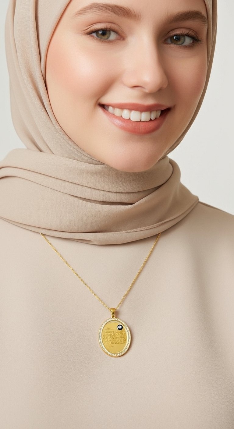 “Nazar boncuklu Kolye – Ayetel kürsi – Çelik Altın Kaplama, Şık ve Manevi Takı, Nazar Koruyucu” için yorum yapan ilk kişi siz olun