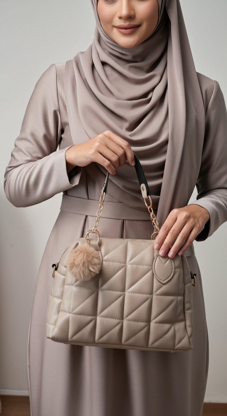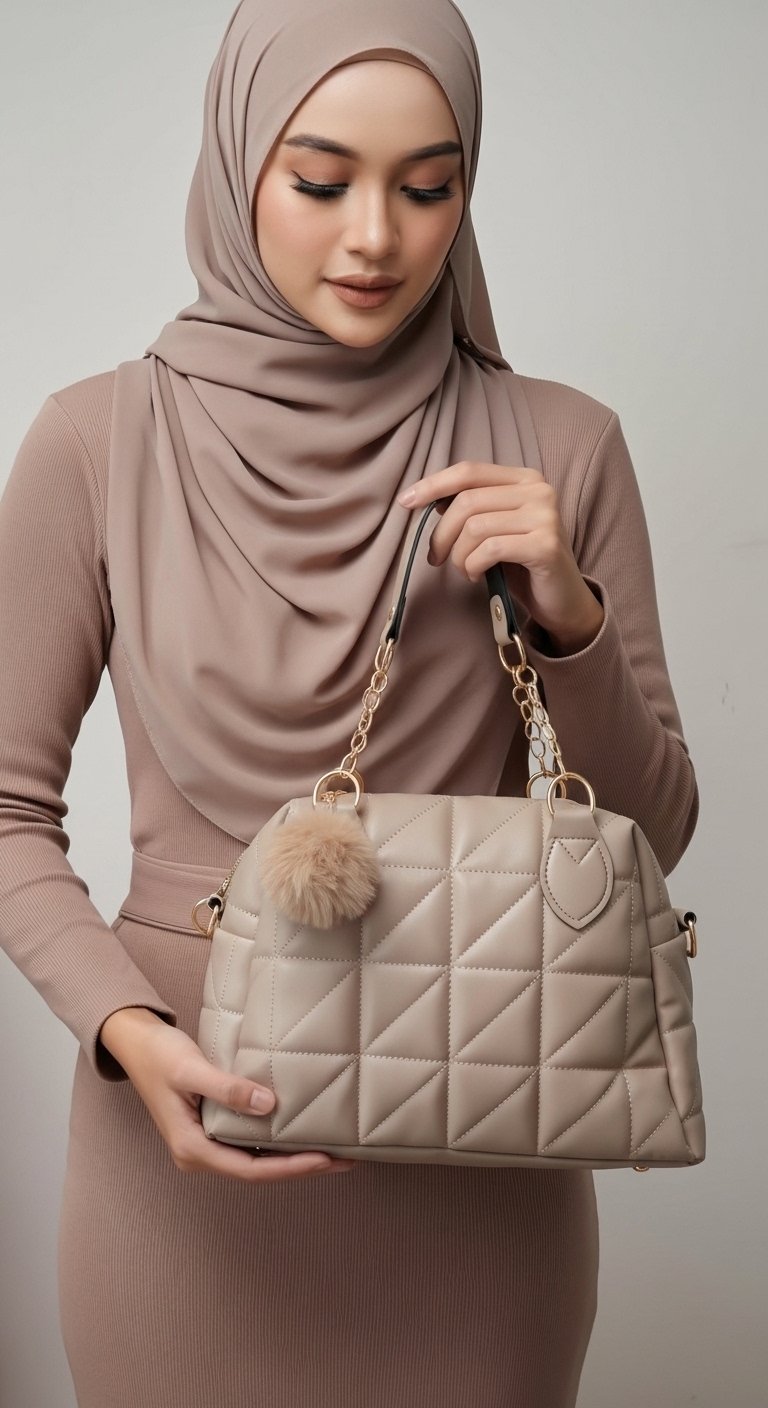 Ponponlu El ve Omuz Çantası – Suni Deri
