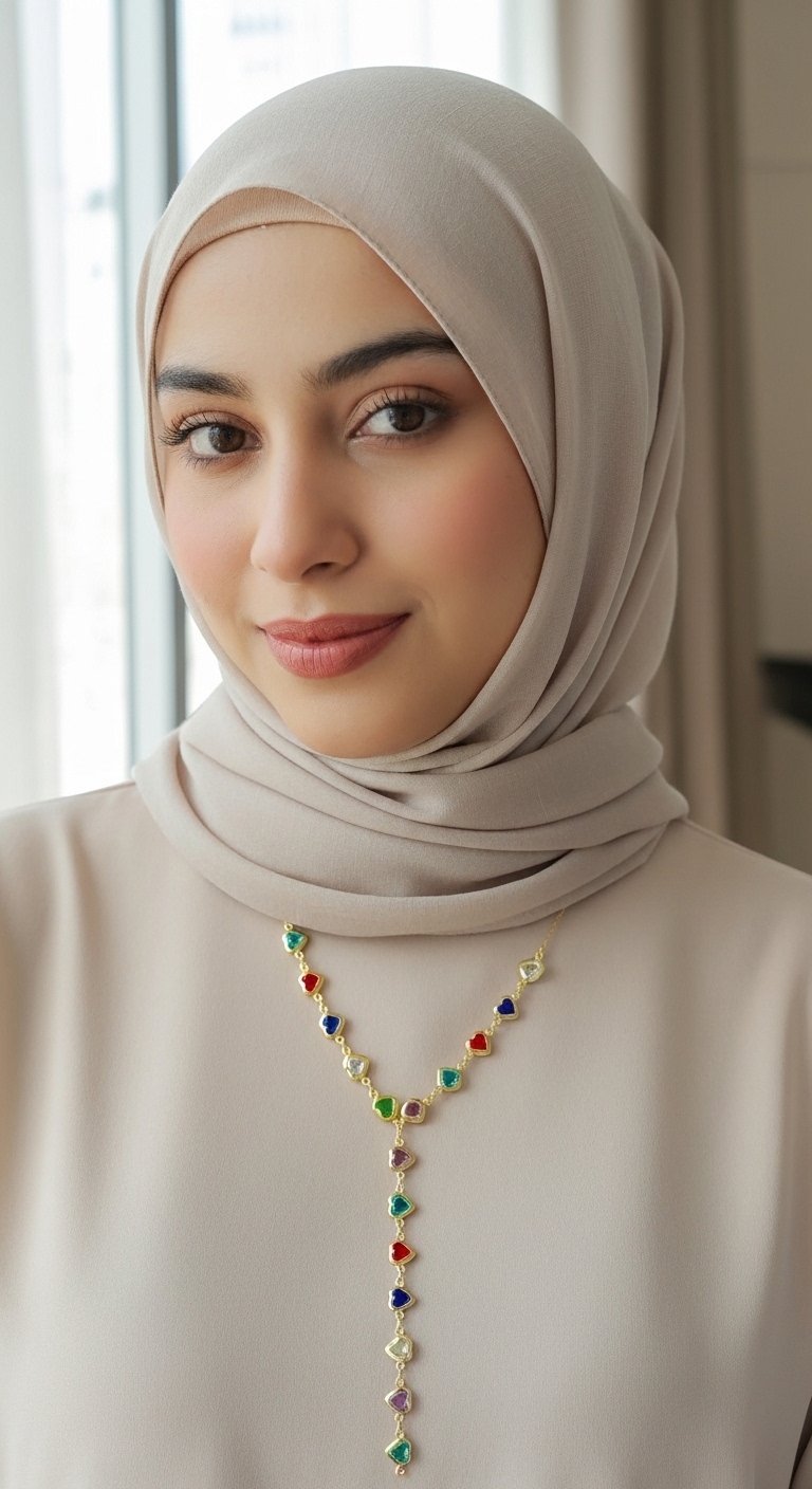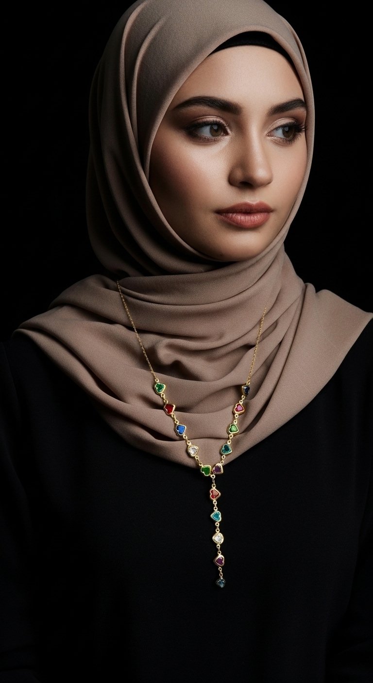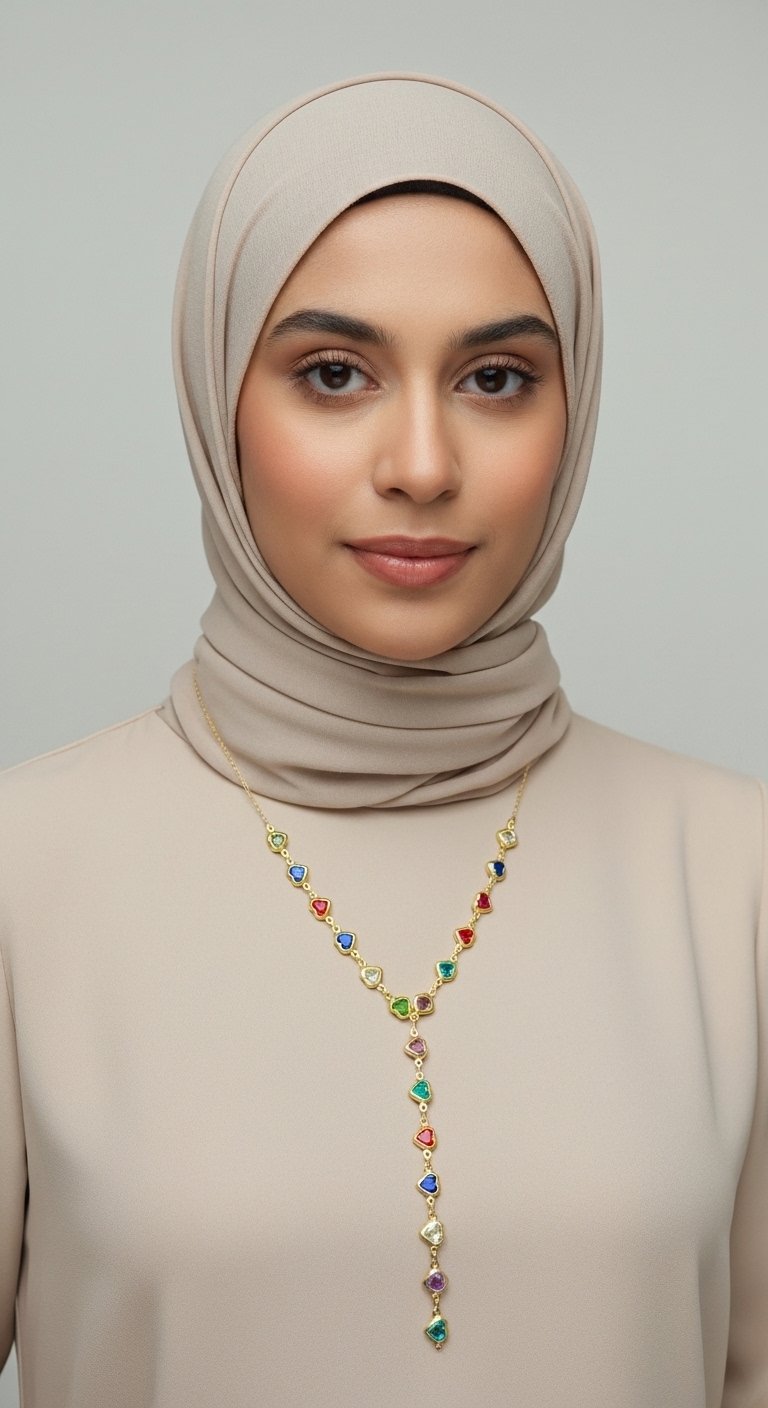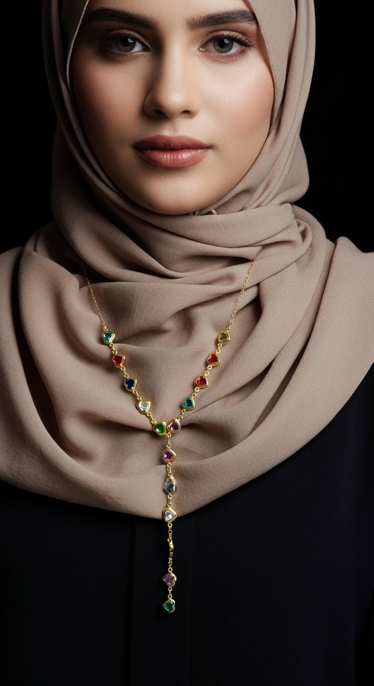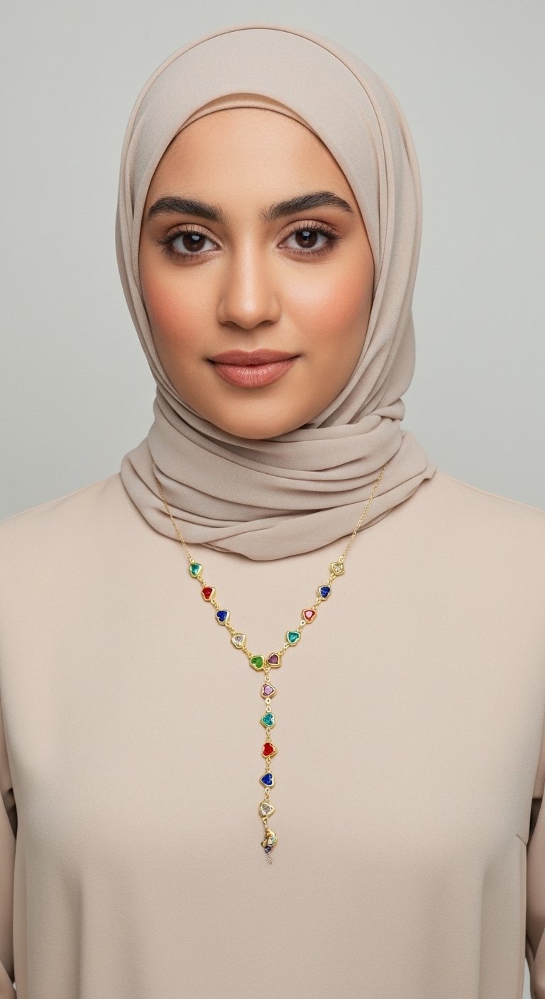 Renkli Kalpli Y Kolye – Çelik