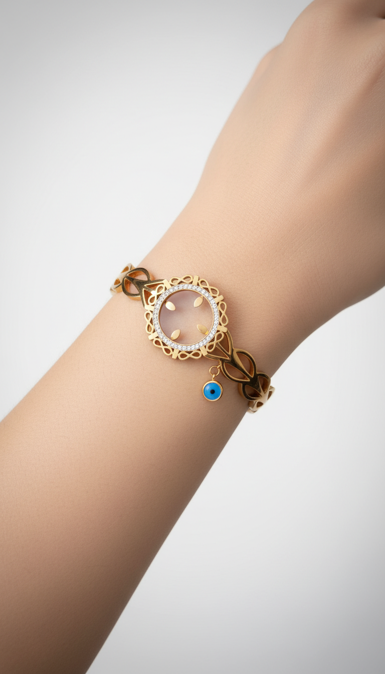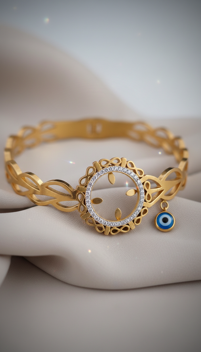 Zirkon Taşlı Nazar Boncuklu Çeyrek Takılan Kelepçe – Çelik